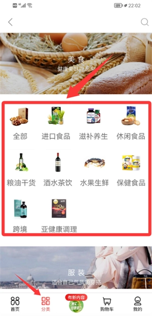 3、切换到分类页面,在美食栏目里挑选具体的食品种类。