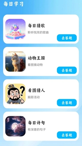 你听过没是一款以知识学习和趣味互动为核心的软件,覆盖多种知识领域,为用户提供丰富的学习体验。它整合了猜歌、动物识别、人物辨识等多元学习形式,能够满足不同用户的知识获取需求,同时便于各年龄段用户快速掌握使用方法,轻松开展学习互动,实现学习与娱乐的双重收获。