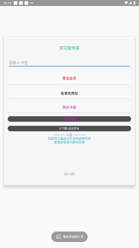 弈可软件库是一款能够一站式安装全网优质应用的全新软件库。该软件库的最新版本包含免费版与会员版,两个版本的内容存在差异。若想使用会员版,需在弈可软件库中输入对应的卡密方可解锁。不过,免费版本所提供的应用和资源数量其实已经相当丰富,并且它目前仍在持续新增更多优质内容!