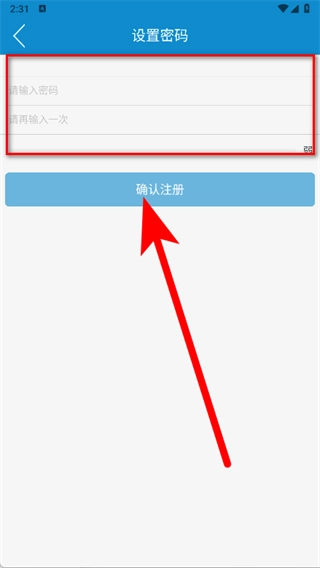 5、进入设置密码页面后,输入密码并再次确认,随后点击确认注册按钮,即可完成账号注册流程。