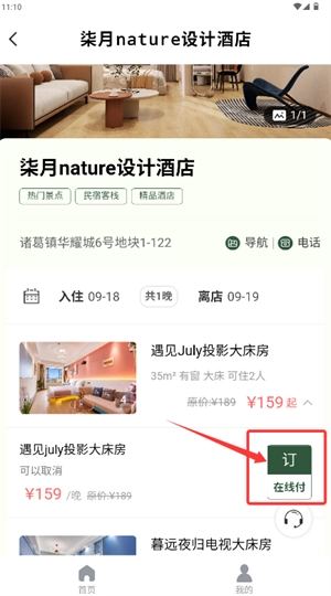3、选定酒店房型后点击在线支付,即可完成住宿预订操作。