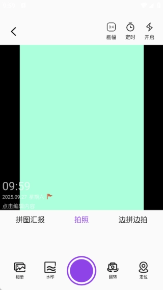 4、在水印拍照页面中,用户能够快速完成拍摄操作,还可以添加水印以及开启定位功能。