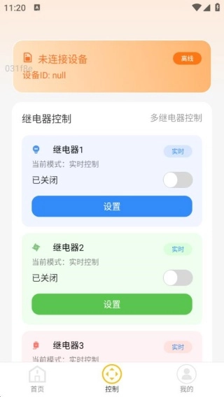 1、可对单个或多个继电器实施控制,支持设置继电器的名称与图标,还能选择相应的控制模式等。