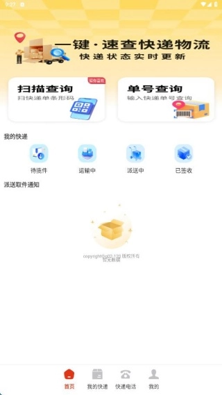 1、完成安装并进入首页后,该平台不仅支持多种快递查询方式,还能展示详细信息。