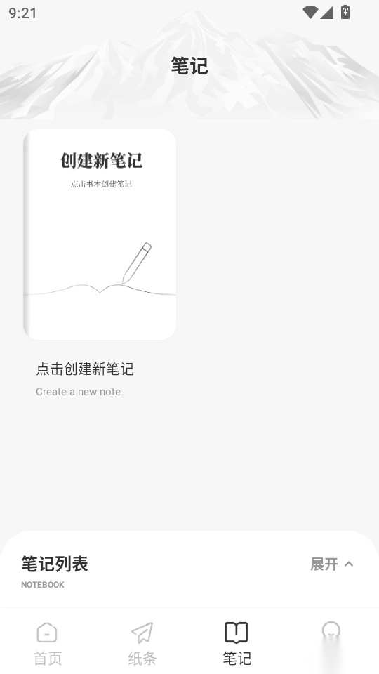 2. 在软件首页界面找到底部菜单栏中的“笔记”功能按钮,点击该按钮进入下一步操作。