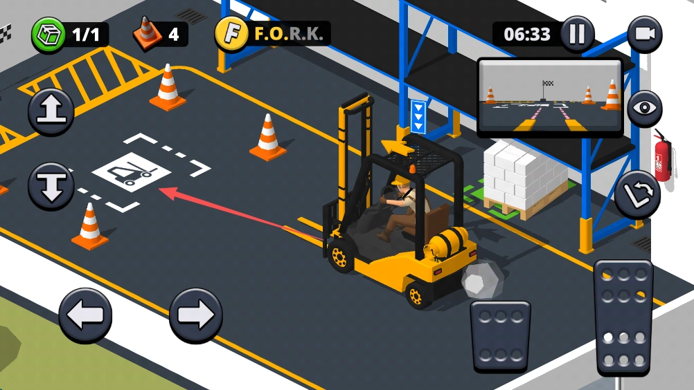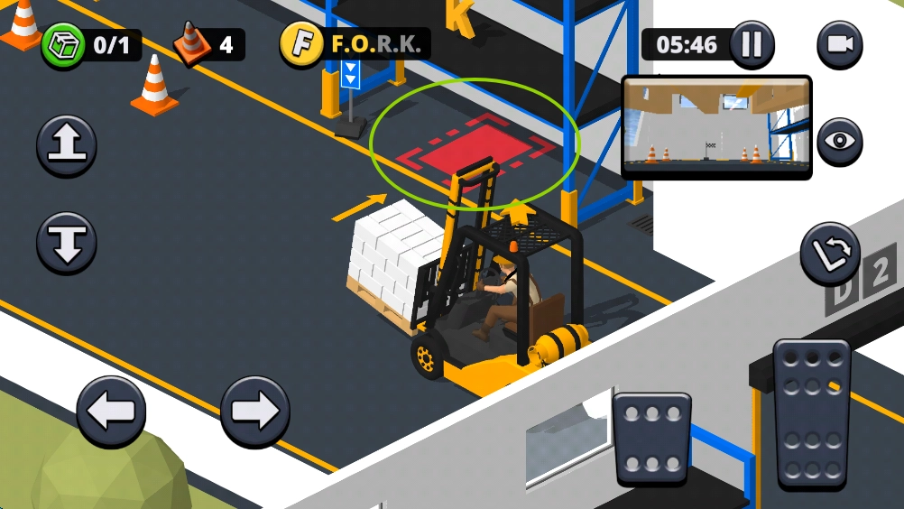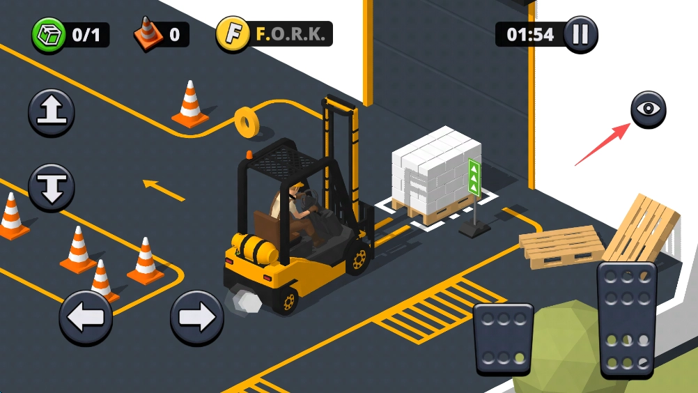13、放置操作完成后,我们依旧要把叉车停到指定区域,一旦停放好,关卡便会进行结算。