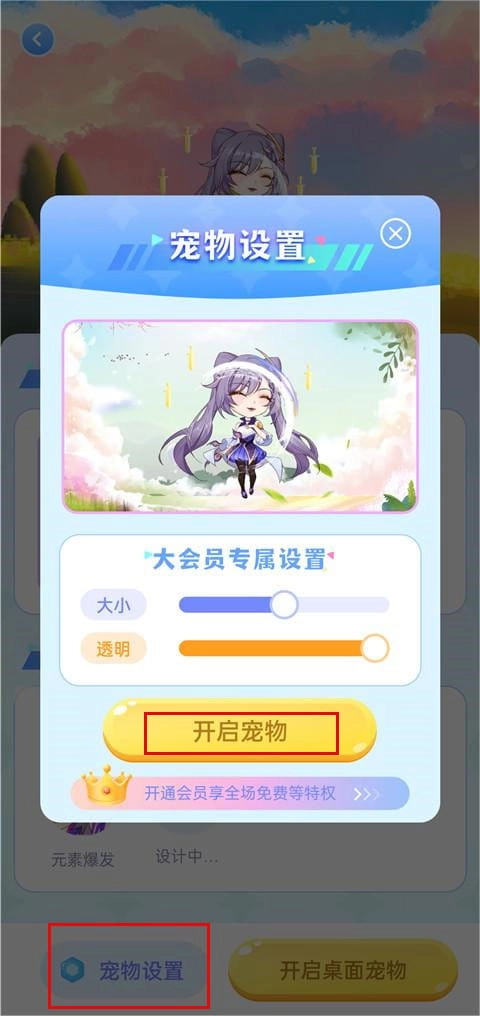 2、在软件里找到“宠物设置”选项并点击,依据提示开启宠物显示功能,使宠物呈现在桌面。