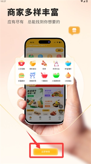 1、打开应用后,在商家展示页面点击“立即体验”按钮,即可进入主界面。