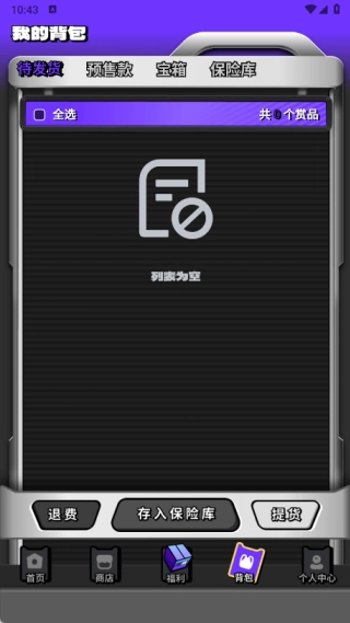 4、通过背包页面,能够查看待发货、预售款、宝箱以及保险库等相关信息。