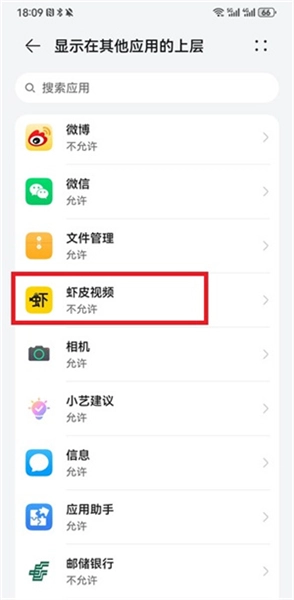 3、进入授权界面后,需找到【虾皮视频】选项并点击,进入对应的权限设置界面;