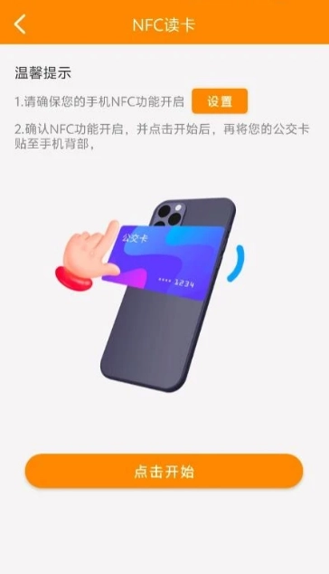 开启NFC功能,通过贴卡完成充值:首先打开相关应用,接着点击公交卡充值选项,然后选择NFC充值,再点击开始按钮,最后把公交卡贴合在手机背面的NFC感应区域即可。