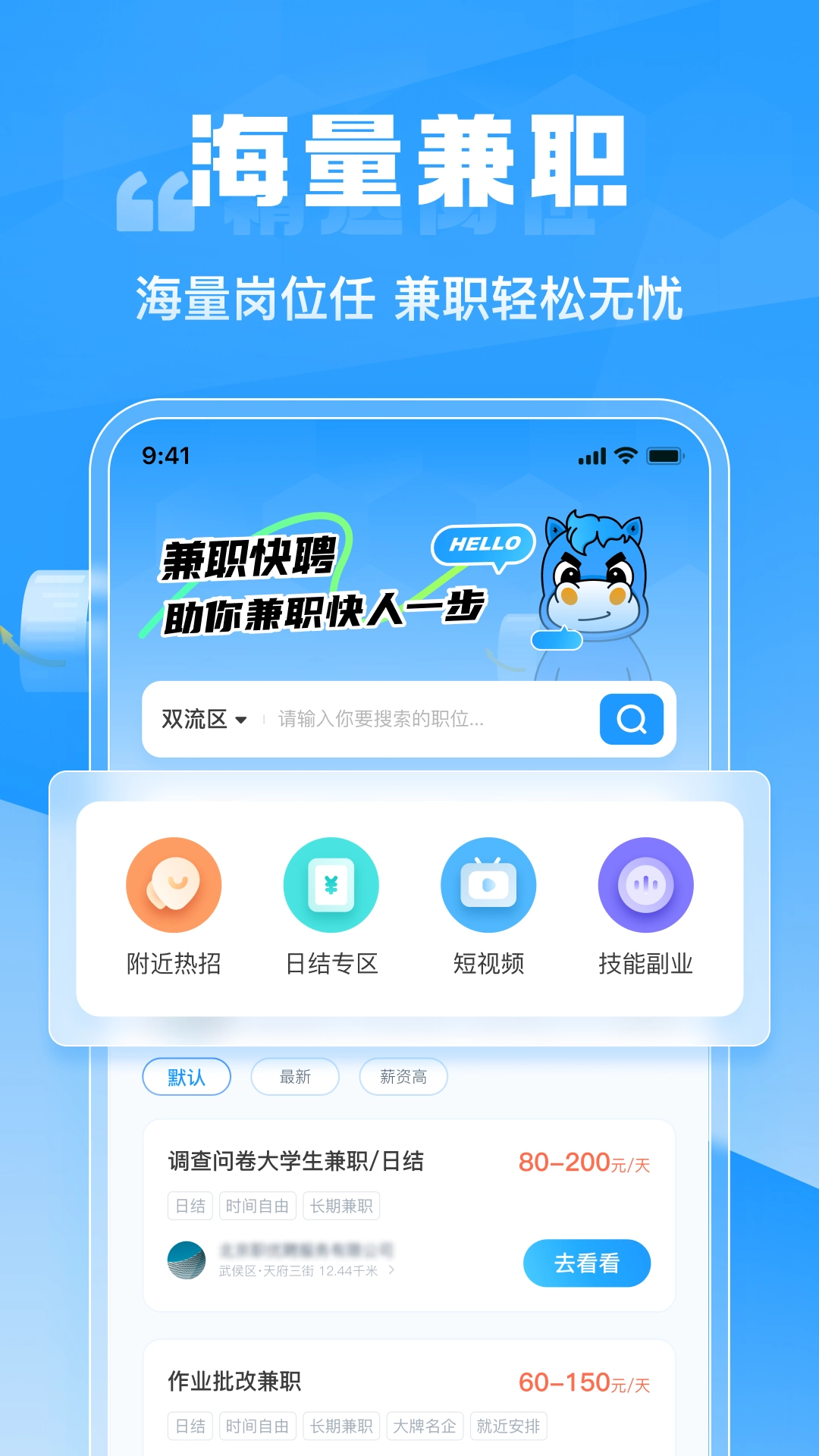 2、支持查询同城及周边岗位,可快速锁定附近的兼职机会,软件能够精准捕捉求职需求,助力求职过程更加高效便捷。
