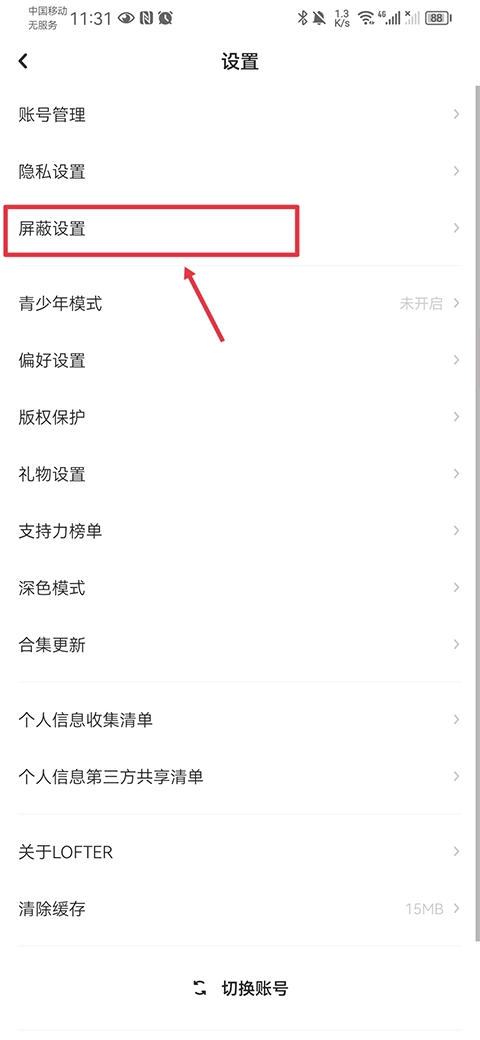 2、进入设置页面后点击屏蔽设置