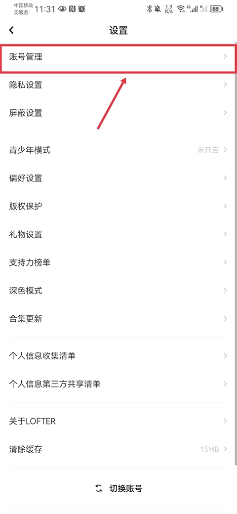 1、在设置界面中点击账号管理