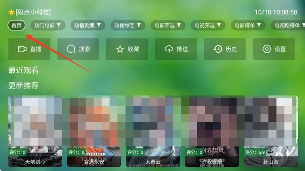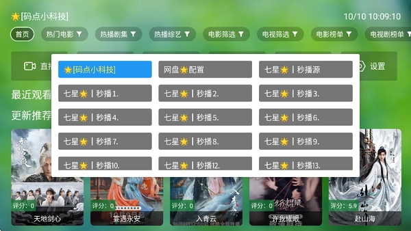 进入软件,点击左上角首页有很多播放源可以切换