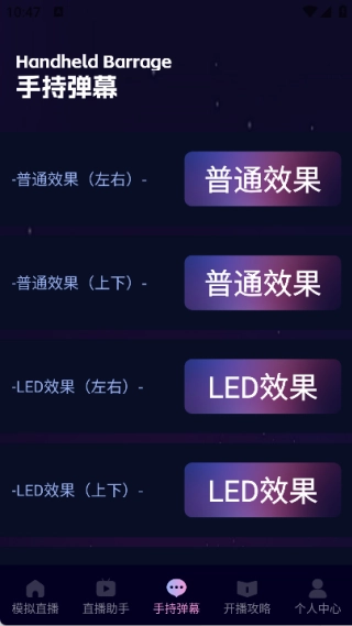 3、在手持弹幕功能里,你能了解到各种各样不同的效果,并且可以针对这些不同的效果进行快速熟悉与掌握。