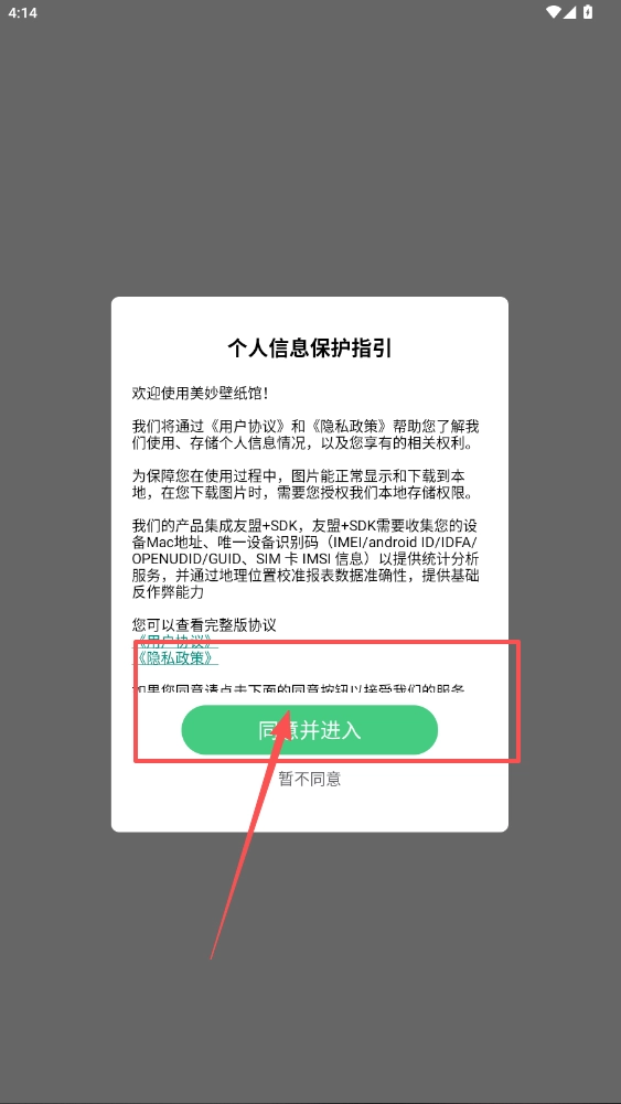 1、在本站这款软件,双击安装 2、安装完成后,点击进入软件,在跳出的页面点击“同意并进入”