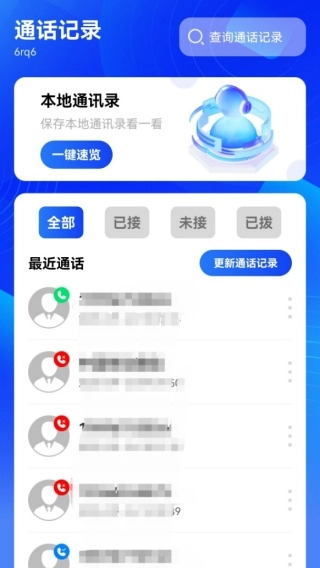 3、可按全部、已接、未接、已拨等类别对通话记录进行筛选,也能查询通话记录,并且支持更新通话记录。