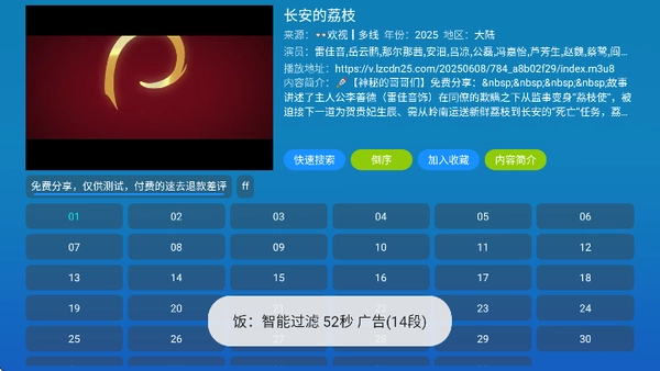 2、每个节目配备多个片源,用户可依据所在位置的播放流畅度自主选择。