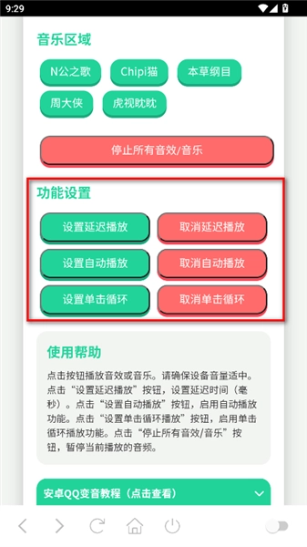 3.功能设置板块,主要包含最新的设置延迟播放、取消延迟播放、设置自动播放、设置单击循环等功能。