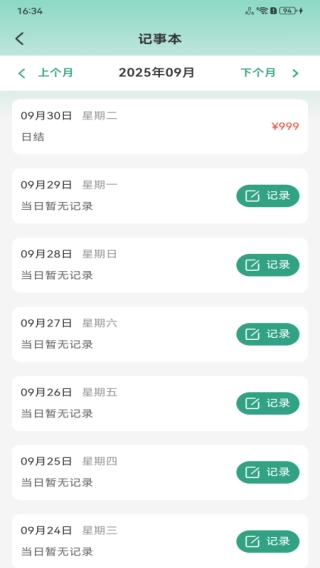 3、记事本功能支持按日期进行记录,用户可查看过往月份的内容,还能标注金额等信息,帮助用户梳理日常工作与收支情况。