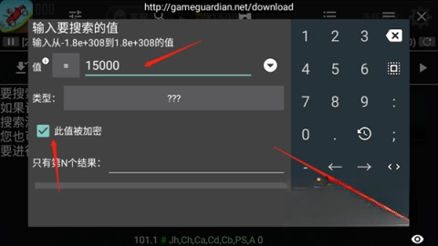 7、输入当前的金币数量,勾选【此值被加密】选项后,点击【新搜索】按钮。