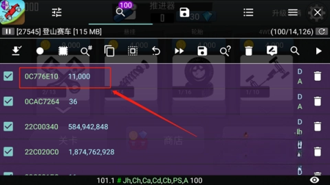 4、等级修改也可采用d类和e类搜索方式,逐步缩小搜索范围,直至定位到目标数值后再进行修改。