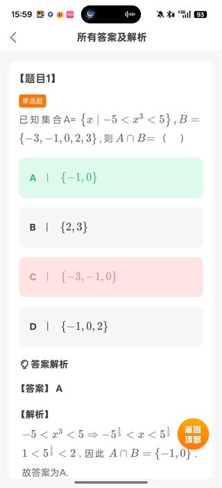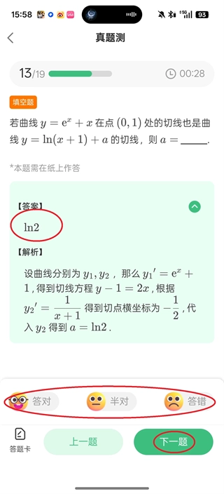 6、这是就会出现答案和解析,用于需要选择“答对,半对,答错”,随后再点击屏幕右下角的“下一题”。