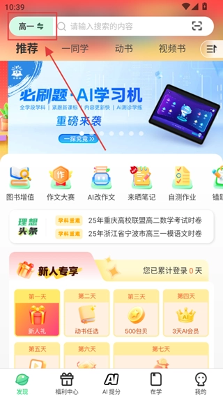 1、首次进入软件可以根据需求选择年级,也可以在软件首页左上角修改。