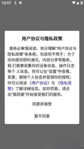 1.安装软件后进入的时候需要先同意隐私权限。