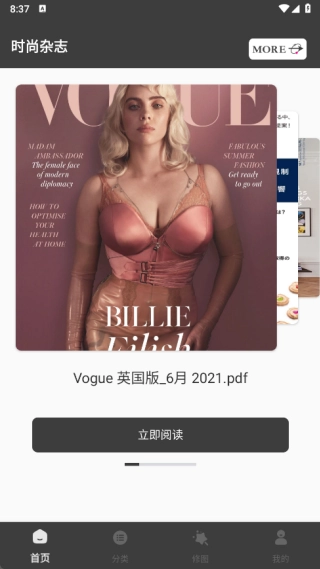 在首页能够浏览到各类精彩的时尚杂志,并且可以随时阅读。