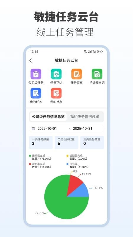 4、进入敏捷任务云台后,可一键将各项工作任务下达给员工进行办公处理。