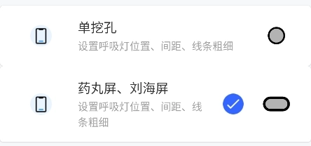 2、对于不同的设备,我们可以设置挖洞或药丸爆炸的吸光通知样式。