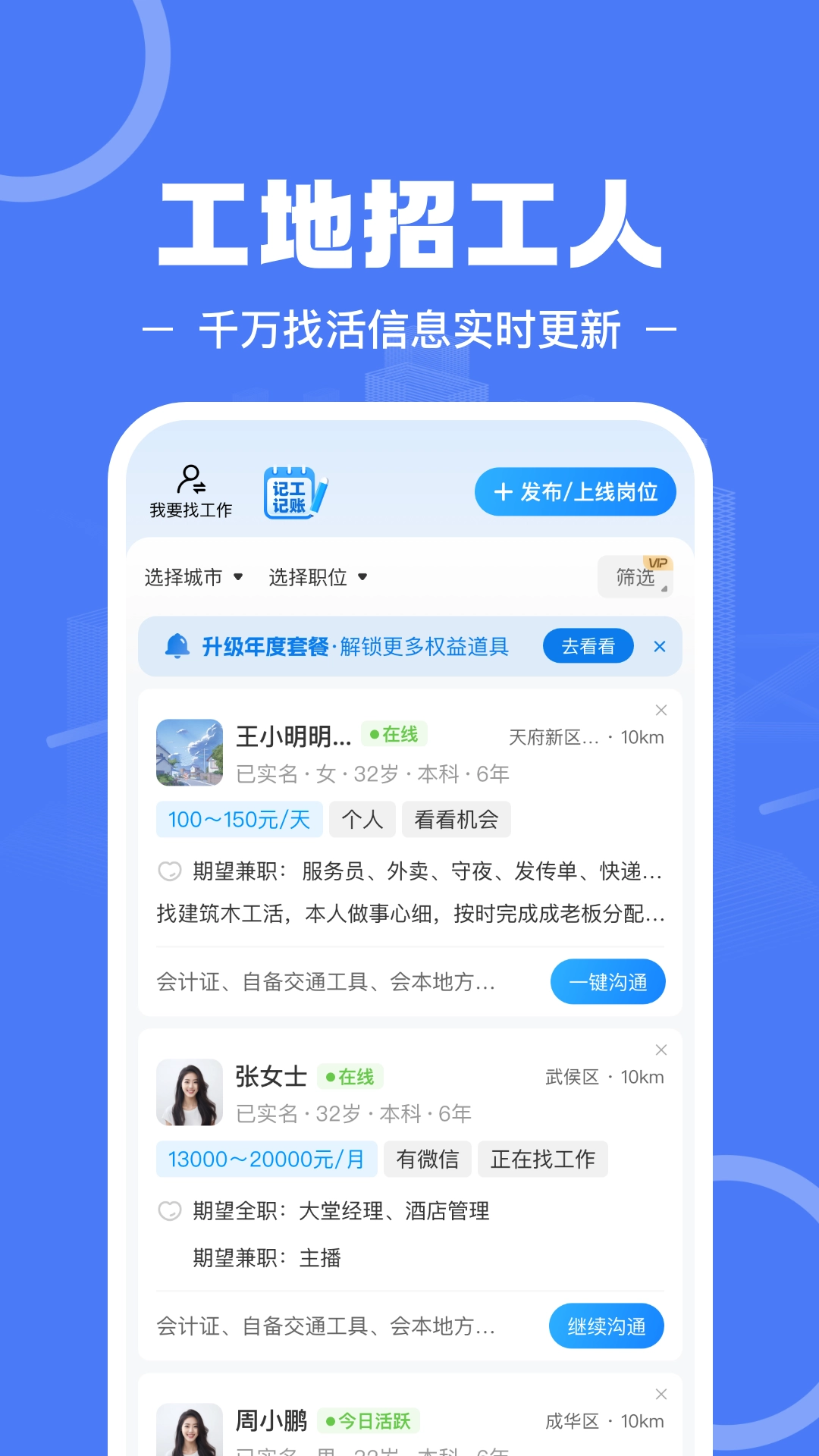 2、助力网友高效寻觅优质工作,该软件可实现工作机会的精准匹配,用户还能随时浏览工地相关资讯。
