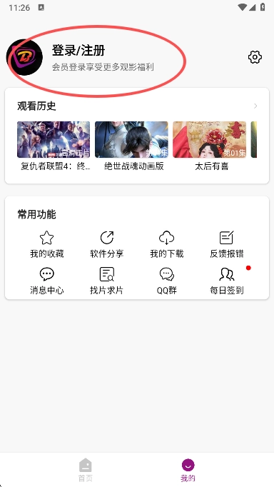 1、来到我的个人中心,点击上方的登录按钮