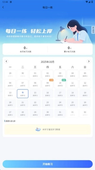 3、做题可以按照你自己的学习节奏来,还搭配了打卡功能,能一键查看复习和刷题的情况。