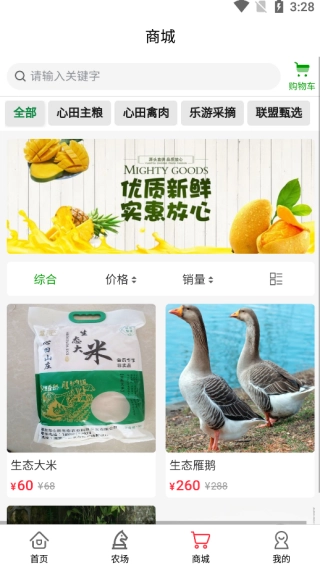3、农场专区推送最新和包括产品,一起来搜索下单。