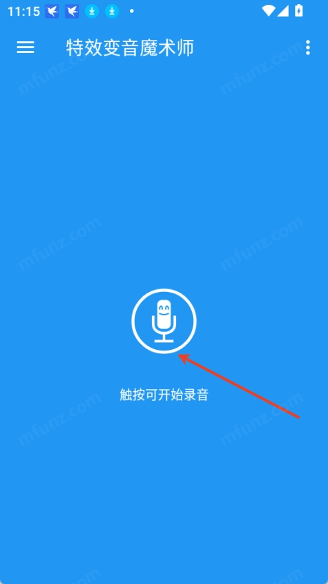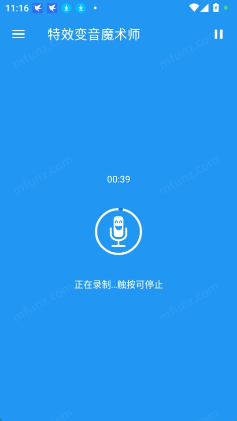 1.打开氦气变音软件(特效变音魔术师),然后触按可开始录音