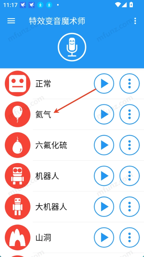 1.多种音效选择,提供氦气、机器人、外星人、巨人、僵尸等50多种音效。