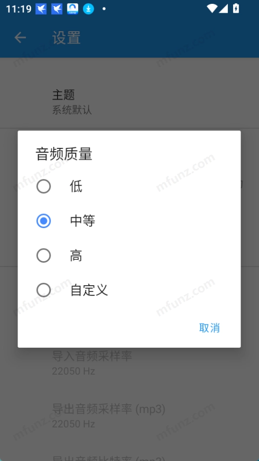 答:在保存处理后的音频文件时,选择“分享”选项即可将文件分享到社交媒体上。
