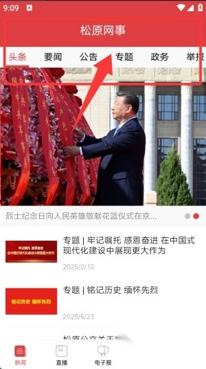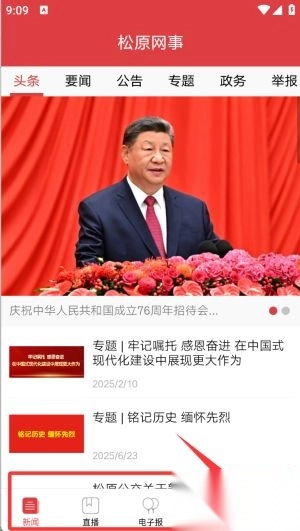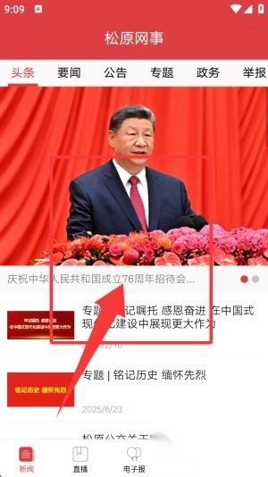 2.观看直播新闻,可在直播专区随时进入直播间查看资讯内容;