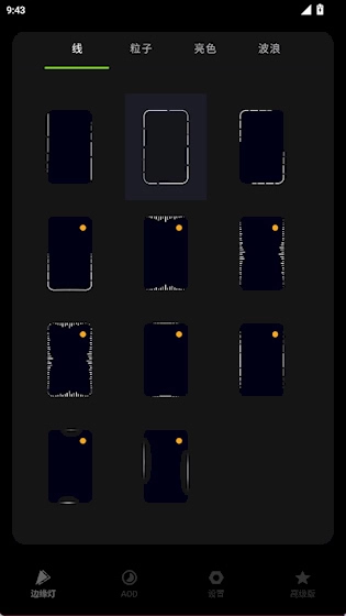 1、在边缘灯界面,可以设置屏幕边缘的动态光效