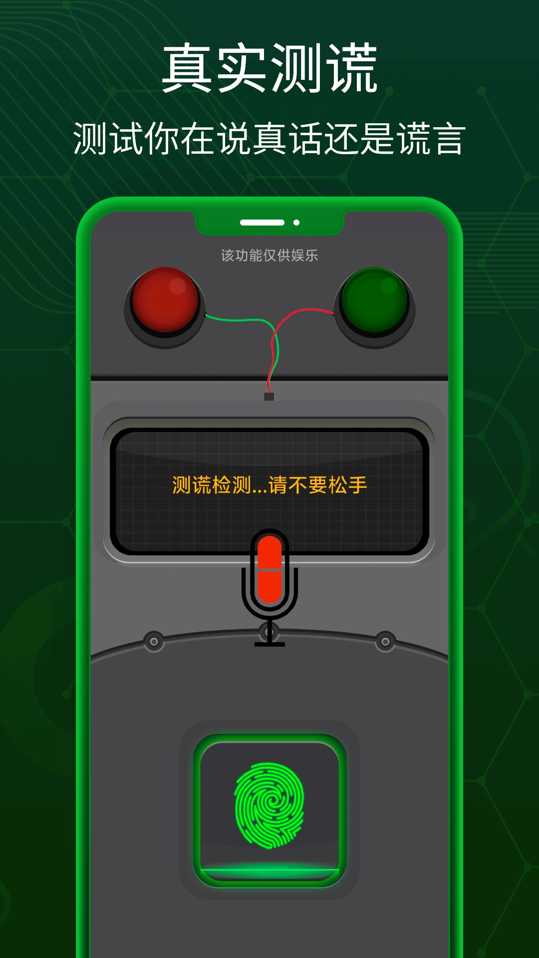 真心话测谎仪是一款主打娱乐搞怪的应用,它本身不具备检测语言真实性的功能,而是聚焦于聚会等场景的趣味工具。它通过模拟指纹扫描的方式“测算”结果,判断用户是否说了真话,主要用于聚会里恶搞朋友,还能预先设置测试结果,搭配真心话大冒险等多种趣味玩法。