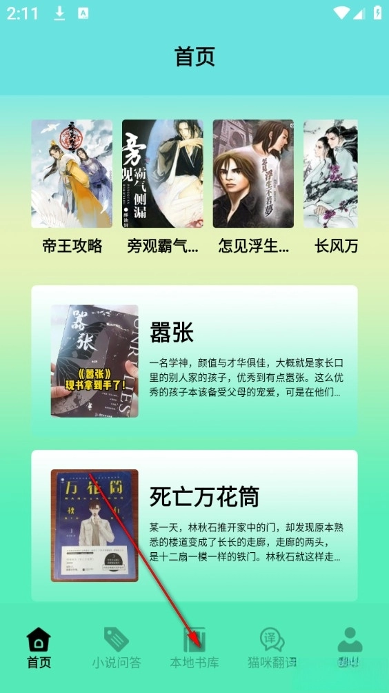 1、打开软件后点击下方本地书库