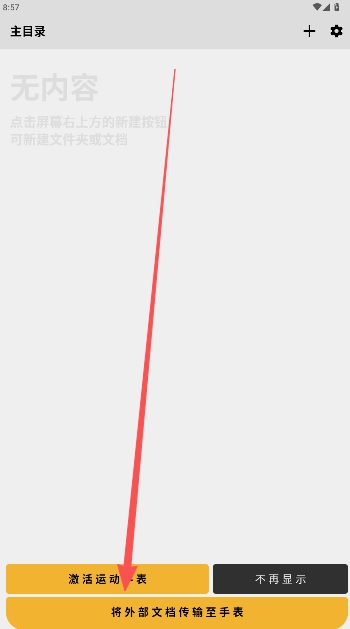 点击主页底部的“把外部文档传输到手表”按钮,然后在设备存储里挑选需要传输的文档
