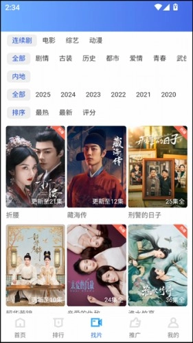 3、在找片界面中,我们能够通过类型、年代、评分等多种方式筛选出自己喜爱的电影和电视剧。