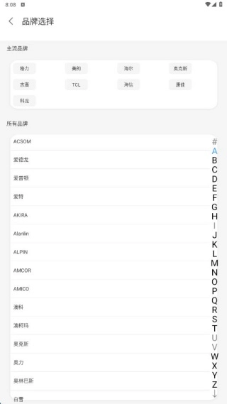 2、请依据你的家电品牌,在设备管理页面完成相关设置,主流家电品牌均支持此功能,可快速进行选择。