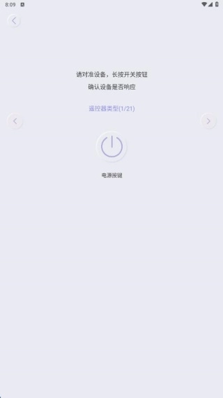 3、根据提示,将操作对象对准家电设备后按下电源键,若家电出现响应,点击确定按钮就能进入后续步骤。
