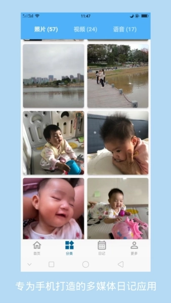 多视角浏览功能:支持按相册、视频、语音等不同类别来查看日记,能满足多样化的使用需求。