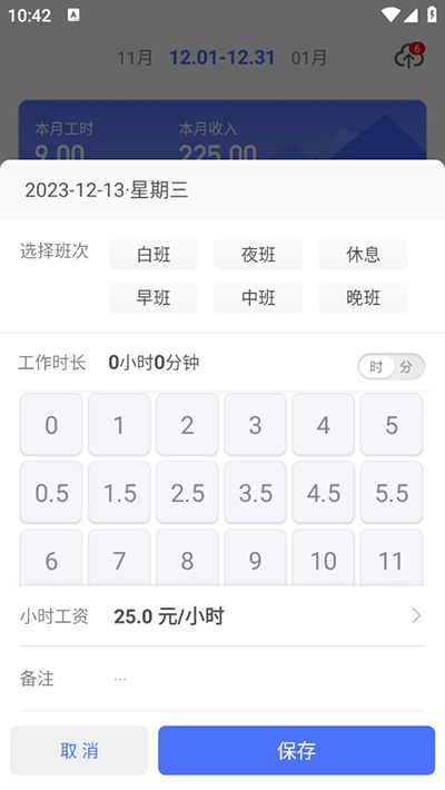 1、快速记录工时:设定好小时工资标准后,每日记录工时,系统便能自动为您核算工时对应的收入